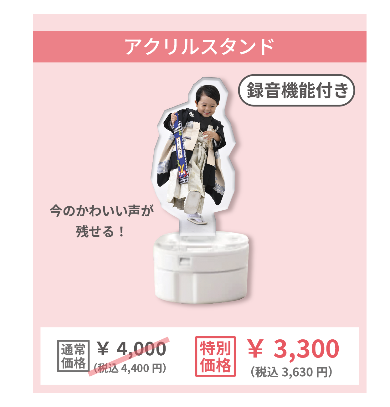 スタジオ撮影や文化センターでのロケ撮影、出張撮影などご希望に合わせて様々な撮影メニューをご用意しています。
