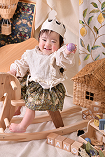 お気に入りのおもちゃや 一緒に撮影したい小物、大好きな好きなおやつ等、お子さまが大好きなものをお持ちいただくとリラックスして撮影できますよ!