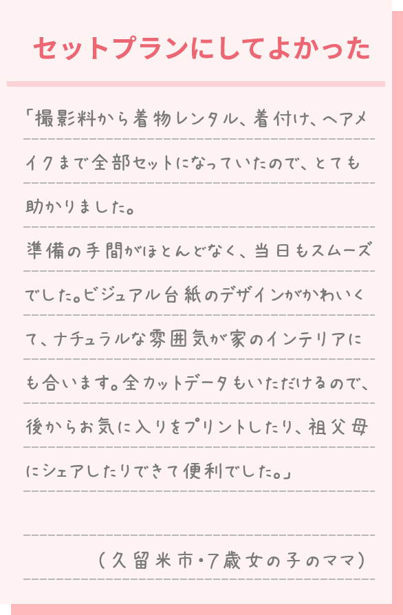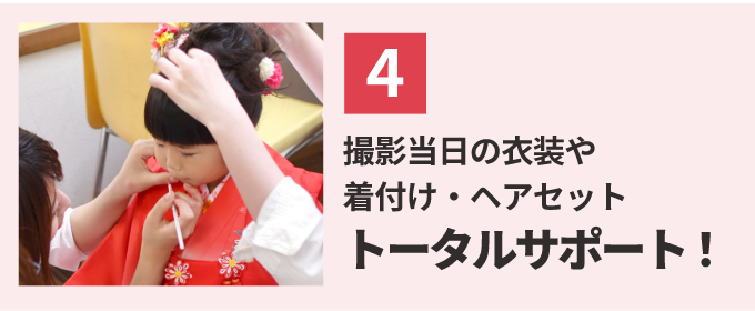 もちろん、七五三衣装・着付け・ヘアセットも全てお任せください。