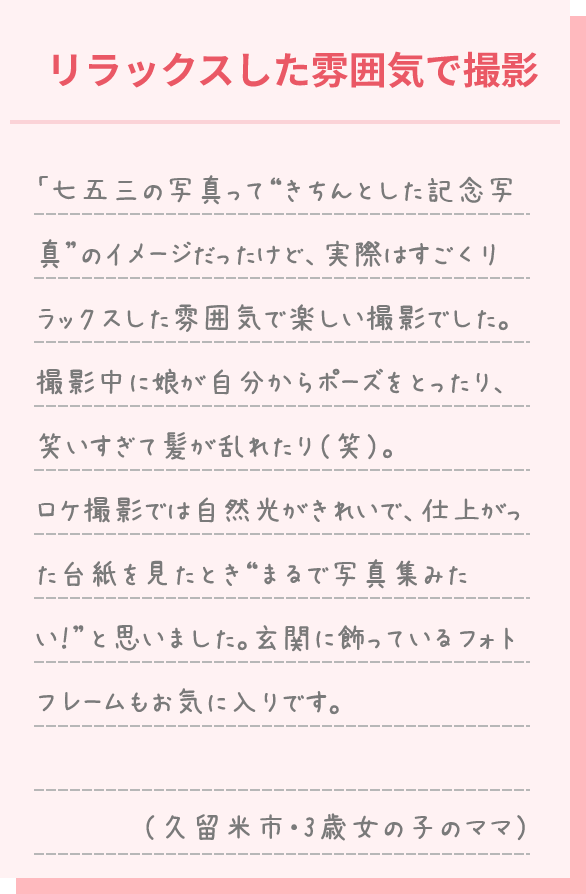 ゆったりとした時間の中でお子様のペースに合わせながら撮影いただけます