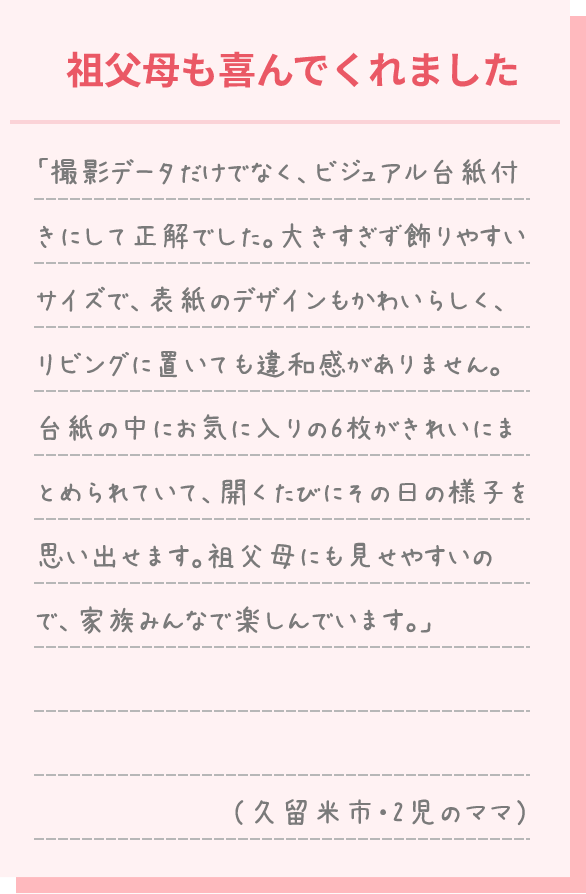 ご家族・きょうだい・祖父母・ペットまで、追加料金なしで一緒に撮影できます。